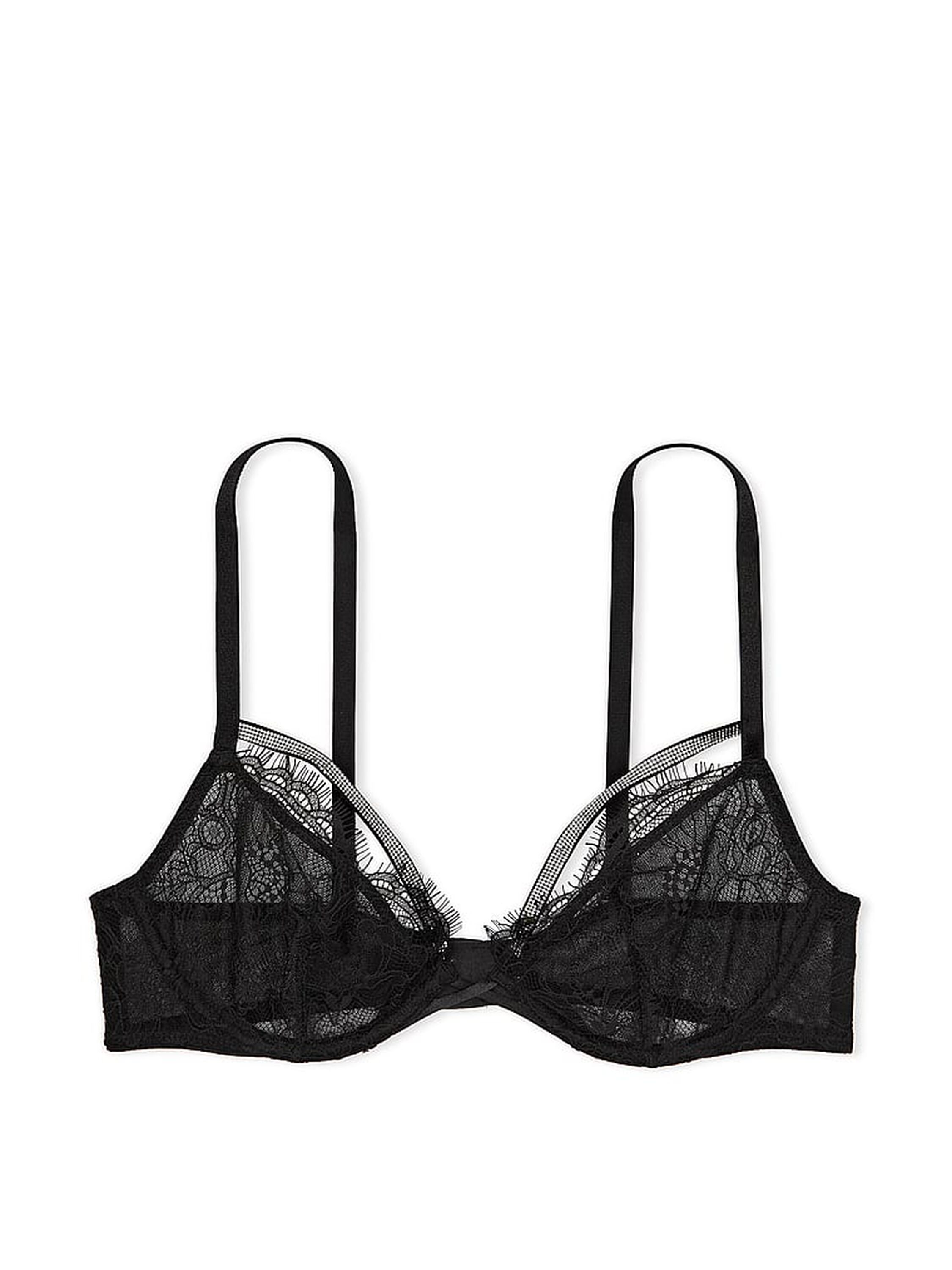 Sujetador de media copa de encaje sin forro y con tiras brillantes✨